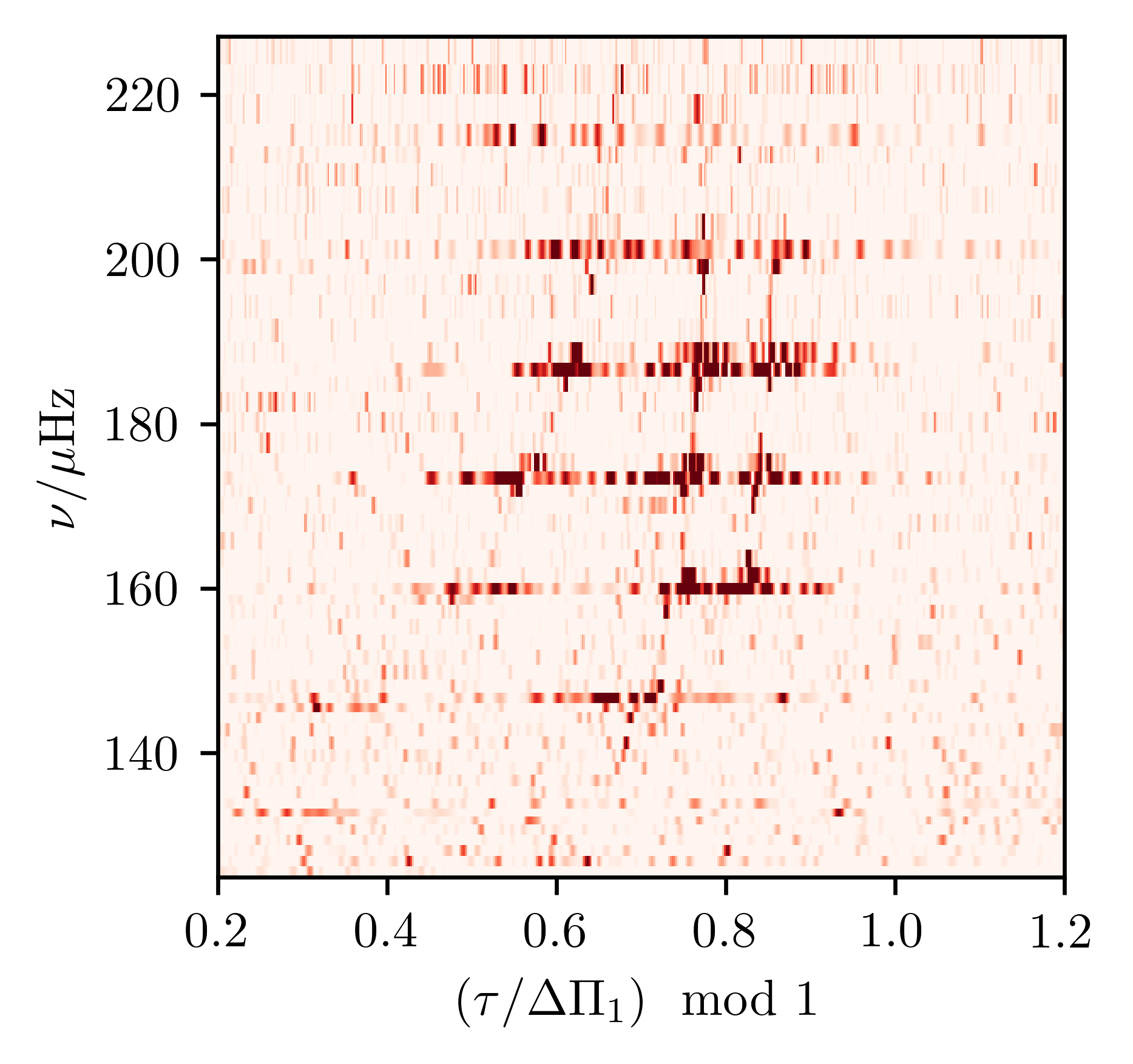 Pure g-modes: \[{1 \over \nu_{n,\ell}} \sim \Delta\Pi_\ell \left(n_g + {\ell \over 2} + \epsilon_{g, n,\ell}\right)\]