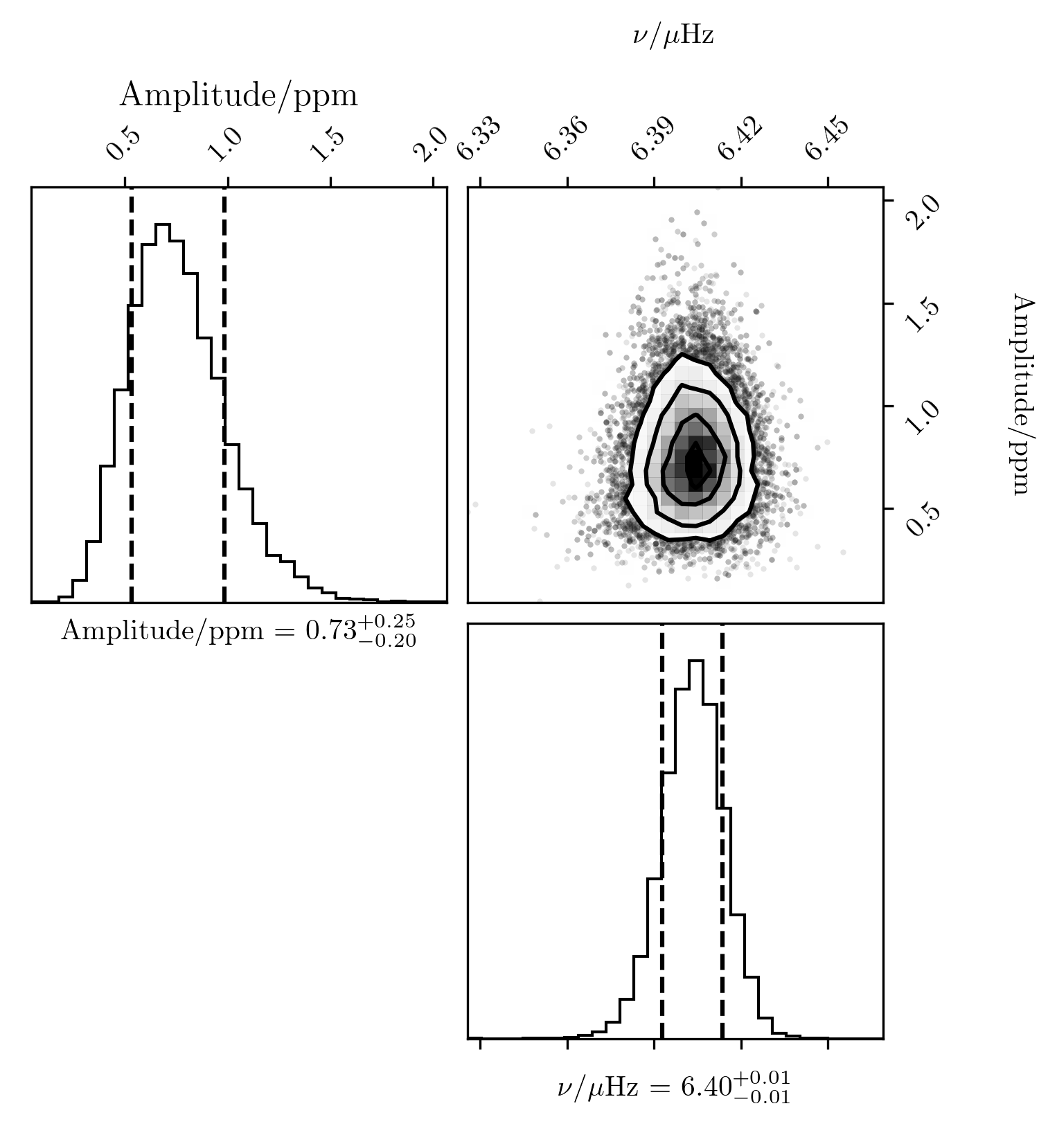 \[ \begin{aligned} {\Delta\nu_\odot} &\sim 135\ \mathrm{\mu Hz} \\ {\nu_{\text{max},\odot}} &\sim 3090\ \mathrm{\mu Hz} \end{aligned} \]
